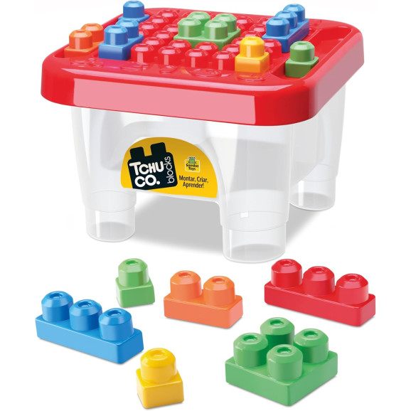 Descrição Tchuco Blocks Mesa da Samba Toys é uma super mesa, com peças variadas para você montar, desmontar e criar.